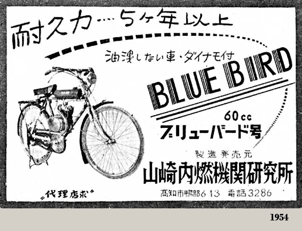 En 1953, Yamazaki produjo su primer ciclomotor Blue Bird de 60 cc de 2T. Dos años más tarde apareció ¹ un segundo ciclomotor equipado con un motor de 125 cc de 2T, montado en el interior del cuadro, que a su vez tuvieron que reforzar; la transmisión final era mediante correa, y que debió ser aterrador de usar como ciclomotor (!)...