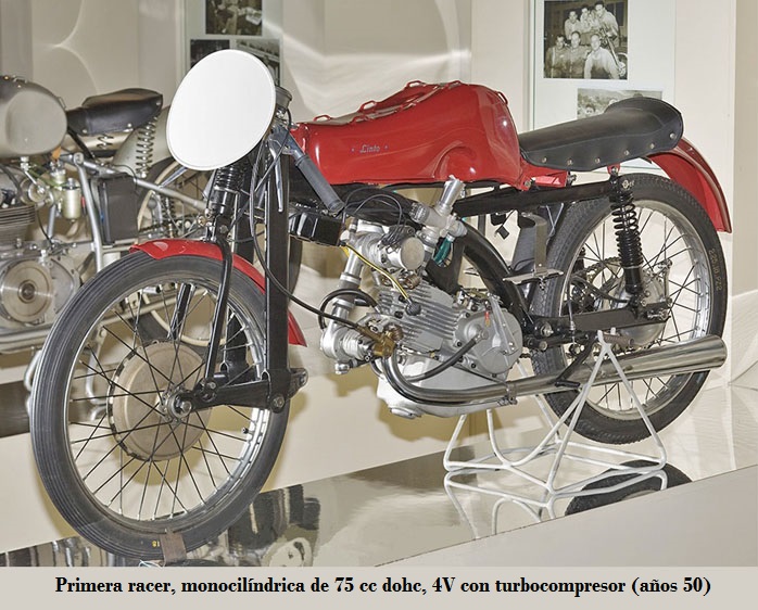Durante la década fabricó su primera motocicleta de competición equipada con motor de 75 cc dohc, 4V con turbocompresor, doble encendido y horquilla tipo Earles; era muy cara de producir.