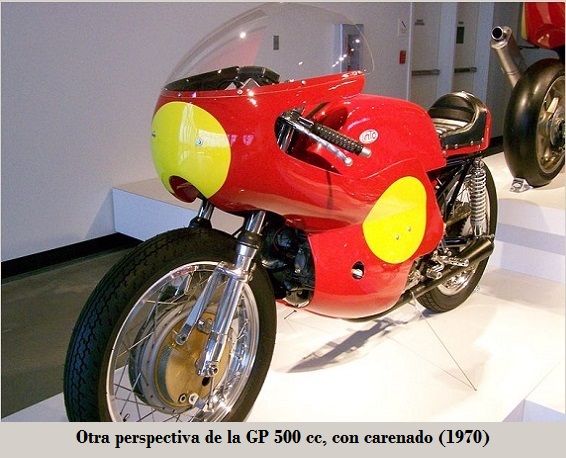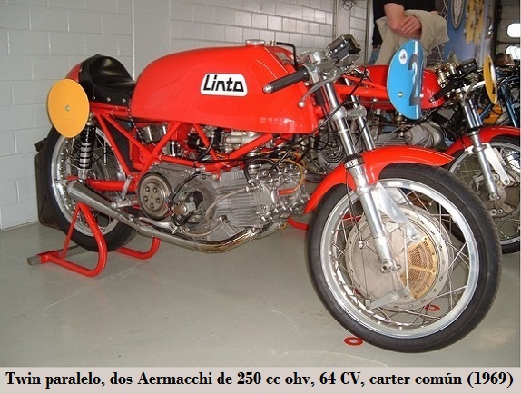 Las dificultades económicas obligaron a adoptar una solución más simple y menos costosa, como acoplar dos cilindros de la AERMACCHI "Ala de Oro" 250 cc transformándolo en un twin paralelo de 500 cc ohv de 32 CV, motor monobloque de 6 velocidades, horquilla Ceriani y frenos de tambor Fontana D/T; se fabricaron ex profeso para la competición, aunque en una serie muy corta.