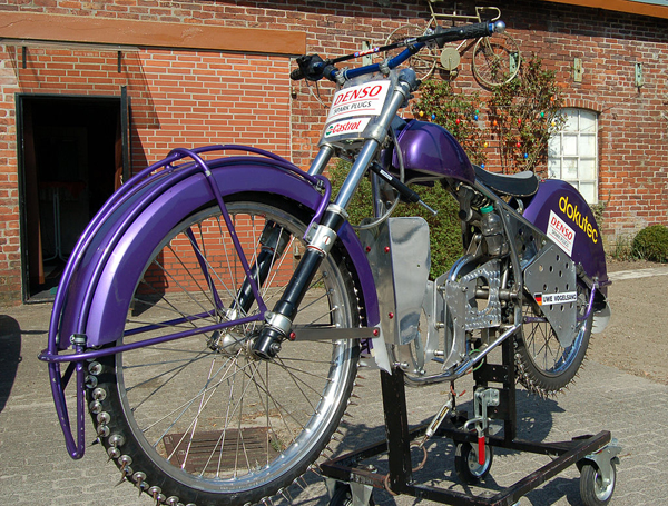 Carreras sobre hielo. Es una disciplina deportiva motociclista de velocidad sobre una pista de hielo ovalada de entre 260 m (0,16 millas ) y 425 m (0,264 millas) de longitud, que los pilotos recorren en sentido antihorario. Es el equivalente del Speedway pero sobre hielo con máquinas distintas como: montar clavos en las ruedas, guardabarros agrandados prolongados, mayor batalla y bastidor más rígido.