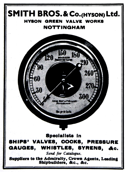 1922 Fabricante de manómetros en Hyson Green Works, Nottingham. Directores: F.W. Perry (Presidente), T.G. Mellors J.P., Alderman G. A. Eastwood, J.P., y el Capitán H. D. Bayley, J.P.