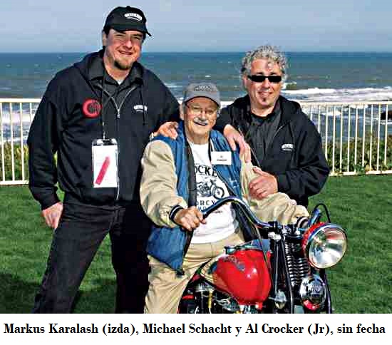 Al Crocker, hijo del fundador Albert Crocker, de la famosa firma, sentado sobre una "nueva" Big Tank.