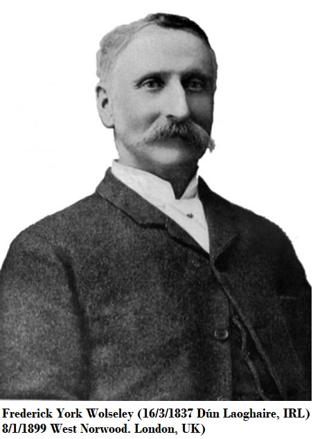 Frederick York Wolseley, nació en Kingstown cerca de Dublín, Irlanda, emigrando en 1854 a Melbourne, Australia, donde trabajó en un rancho de ovejas, para posteriormente adquirir su propio rancho de ganado ovino.