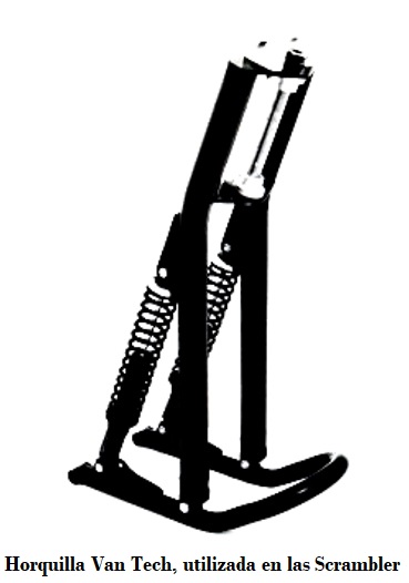 Horquilla tipo Earles sistema Leading Link, que ofrecía más de 6 pulgadas de recorrido y era aproximadamente 1 kg más liviana que cualquier horquilla telescópica de entonces. disponible