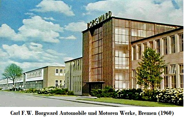 1938, el 23 de septiembre, se inauguró, la fábrica "Carl F. W. Borgward Automobil- und Motorenwerke", con sede en Sebaldsbrück, cerca de Bremen. Después de la Kristallnacht (Noche de los cristales rotos), Borgward se unió al Partido Nazi. En aquella época, 22.000 personas trabajaban dentro de la compañía. Hasta el final de la guerra, la producción de Borgward fue principalmente de vehículos militares y camiones.