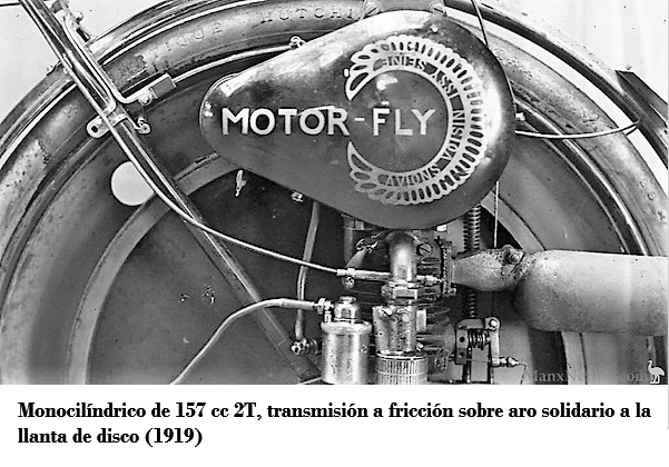 Pero la característica es que la trasmisión final no es a través de correa o cadena sino solidario al cubo de la rueda mediante engranajes o bien sobre un aro solidario a la llanta (v. gr. caso del Motor Fly VOISIN.