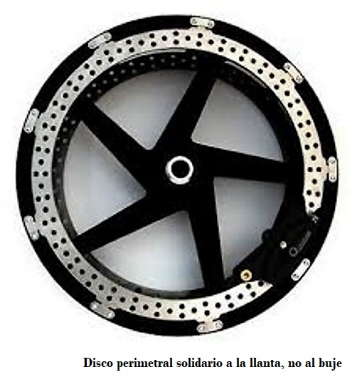 Los frenos perimetrales son frenos de disco que no están sujetos al buje de la rueda, sino al exterior (perímetro) de la llanta. Con ello se consigue que los radios soporten menos esfuerzo, lo que permite una construcción más ligera de estos reduciendo así el peso de la rueda y por tanto la masa no suspendida del móvil