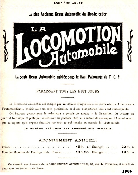 En 1901, el título compitió con La Locomotion, cofundada por Louis Baudry de Saunier, quien rebautizó el título en 1903, La Vie automobile.