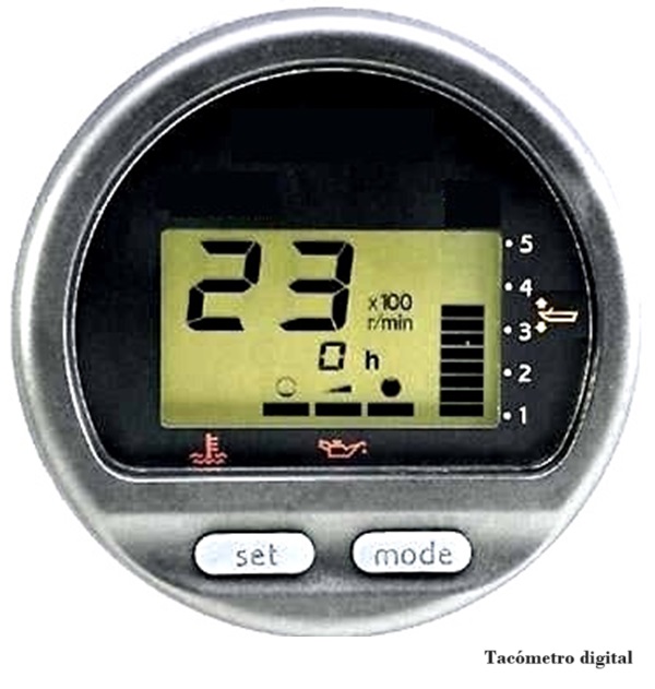 El tacómetro indica el número de rotaciones completas que realiza el cigüeñal en un lapso de tiempo; o bien, el número de veces que un pistón sube y baja en su cilindro; se mide en revoluciones por minuto (rpm).