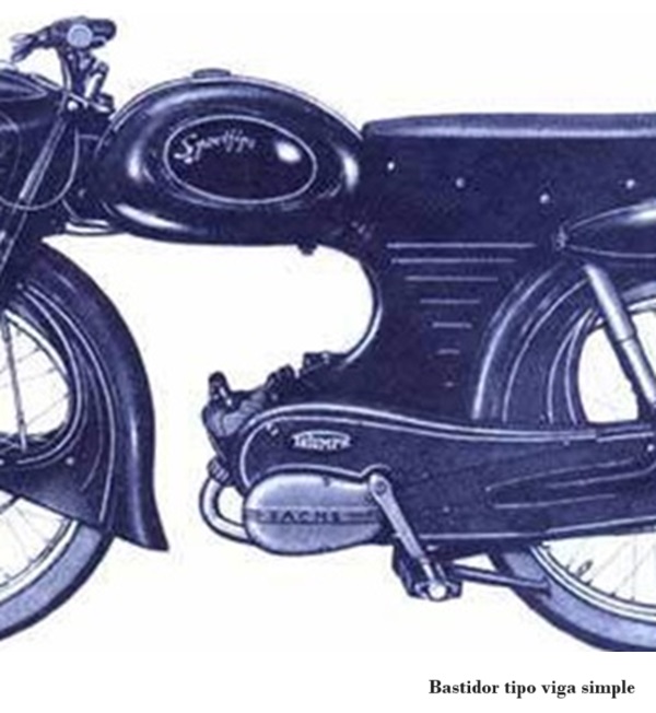 Estructura de acero estampado, dispuesto en la parte superior, desde la columna de dirección hasta por debajo del asiento; de ella se cuelgan: el motor, transmisión, tanque, horquilla y basculante trasero.Seria una variante de la monoviga