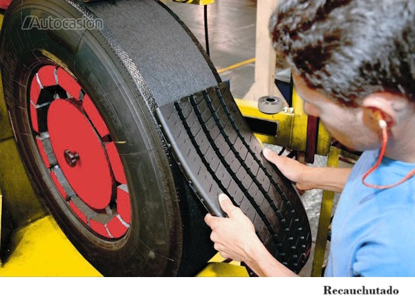 Volver a cubrir de caucho un neumático con la cubierta desgastada.