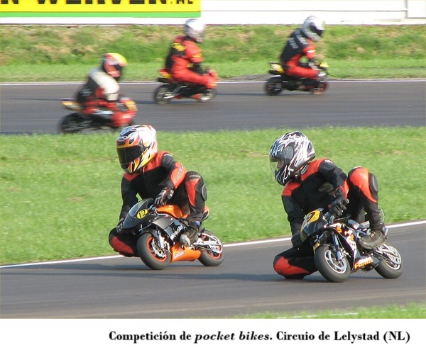 También conocidas por mini bikes, son pequeños vehículos recreativos de dos ruedas, de aproximadamente un cuarto del tamaño de una motocicleta normal, y están impulsadas por motores de combustión interna de dos tiempos de entre 40 y 50 cc. Mantienen el aspecto de las motos deportivas de tamaño completo y son conocidas fuera de Norteamérica por competir en pistas especiales diseñadas para pequeñas máquinas Power Sport. Estos modelos especializados, diseñados para competición, producen hasta 17 CV y tienen suspensión delantera y trasera similar a la de las motos deportivas más grandes. La mayoría de los modelos de consumo son mucho menos potentes, normalmente por debajo de los 3 CV y no cuentan con suspensión, ya que dependen únicamente de los neumáticos para la absorción de impactos. El peso de la mayoría de las máquinas es de aproximadamente 50 lb (23 kg). La altura habitual es inferior a 50 cm (20 in) y hasta 1 m (3 ft 3 in) de longitud.