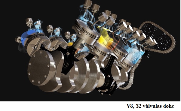 Disposición de 4 válvulas por cilindro en motores octocilíndricos con distribución