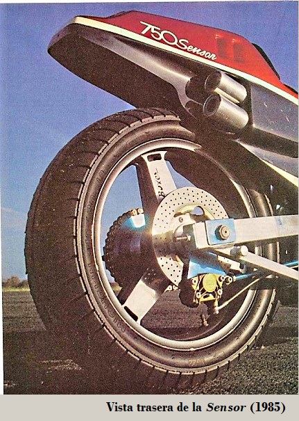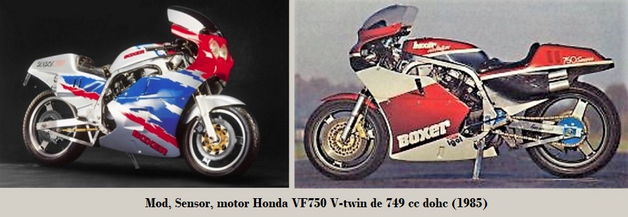 • Sensor: motor Honda VF750 V4 de 745 cc dohc, 6 marchas, bastidor doble cuna de sección cuadrangular de aluminio, suspensión D/T horquilla Ceriani / basculante con monoshock, frenos de disco Brembo D/T y batalla de 1470 mm. 1985