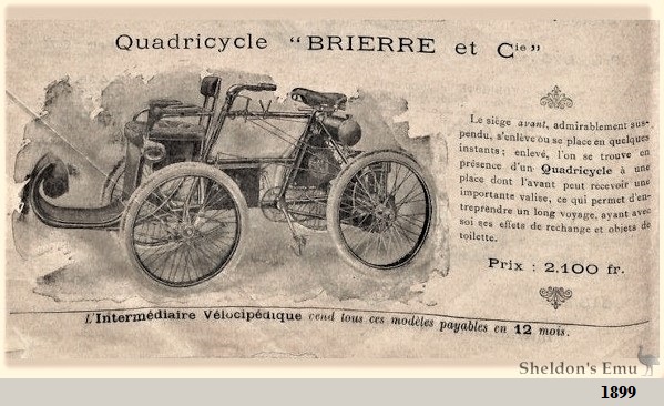 La firma "Brierre et Cie.", fundada por los Srs. E.J. Brierre, Perrenoud y Gansewinkel, establecida en 1898 con sede en el 239 Boulevard Pereire, París, fabricaron vehículos de 3 y 4 ruedas. Todos ellos equipados con motor Otto.