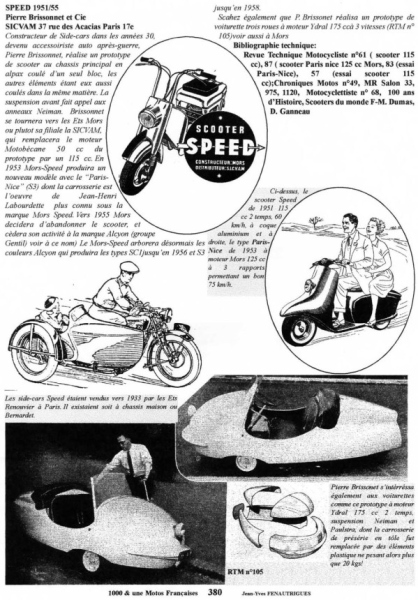 Brissonnet cedió la patente a los Establecimientos Mors - MORS-SPEED - o más bien a su filial SICVAM, con sede en 37 Rue des Acacias. Paris 17e, que reemplazará el motor MOTOBÉCANE 50 cc del prototipo por uno de 115 cc 2T de 3.8 CV.