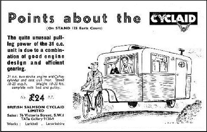 Tras la II Guerra Mundial se trasladó a Larkhall, South Lanarkshire, Escocia, como "British Salmson Cyclaid Ltd.", produciendo bicicletas, y a partir de 1950 el motor auxiliar, "Cyclaid", monocilíndrico de 31 cc de 2T, con tan solo 8.6 kg de peso, montado horizontalmente, sobre la rueda trasera de sus bicicletas, equipado de un pequeño carburador de la firma Amal y con transmisión final mediante correa.