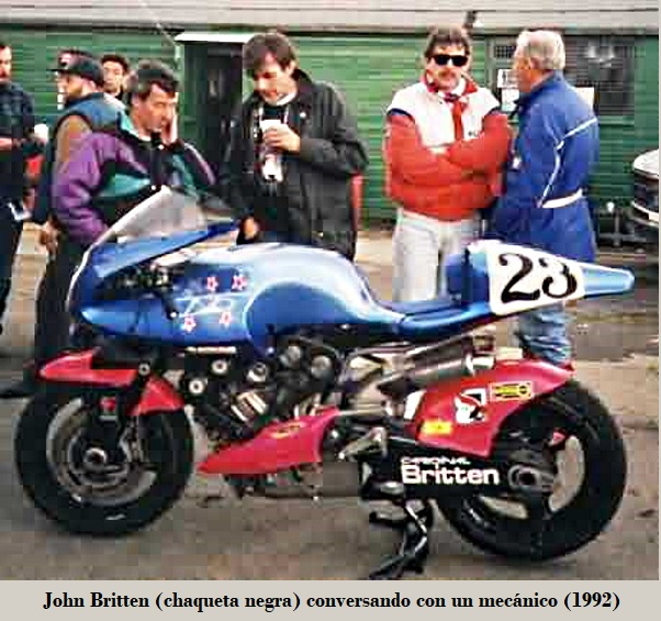 El ingeniero John Britten, (1 de gosto de 1950, Christchurch - † Sepelio 5 de septiembre de 1995, Christchurch, South Island New Zealand) creó la "Britten Motorcycle Co., Ltd.", con sede en la población de Christchurch, Isla del Sur de Nueva Zelanda. Inicialmente operó en su garaje-taller de su domicilio y después fue trasladado a su sede actual en 31 Carlyle Street.