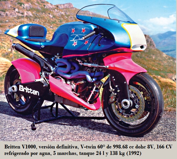 • “Cualquier ingeniero estaría feliz de tener éxito en solo uno de estos desarrollos”, escribió Kevin Cameron en la edición de junio de 1992 de la revista internacional Cycle World. “John Britten decidió abordarlos todos: dos nuevos diseños de culatas, aerodinámica renovada, horquillas y ruedas. Todos funcionaron".