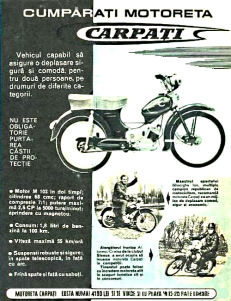 La empresa "Uzina 6-Martie" b>¹ Oralşul Stalin, capital de la provincia de Braşov, fue a partir de 1960 la principal constructora de ciclomotores, en Rumania. Equipados con motores propios de 68 cc 2T, que se les conocía por el nombre de "Carpathi"...