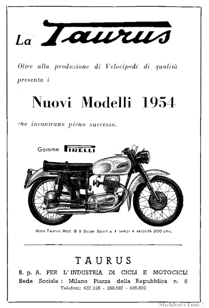 La firma “Taurus S.p.A.” con sede en la pequeña población de Vanzaghello, provincia de Milán, fundada en 1908 por Vittorio Fabri, llegando a ser considerada como destacado fabricante de bicicletas.