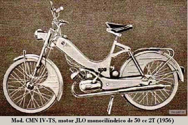 Denominado CMN IV-TS, con motor monocilíndrico Jlo Piano G50 de 48.76 cc 2T, 1.23 CV / 5 250 rpm, 2 marchas, embrague multidisco en baño de aceite, carburador Bing, magneto Noris 6 V / 17 W, lubricación por mezcla al 4%, suspensión D/T horquilla telescópica / 2 amortiguadores hidráulicos, transmisión final mediante cadena, ruedas D/T 2.00 x 23", tanque combustible de 4.5 L, (reserva ~ 1.0 L), consumo 1.45 L/100 km y 40 kg de peso.