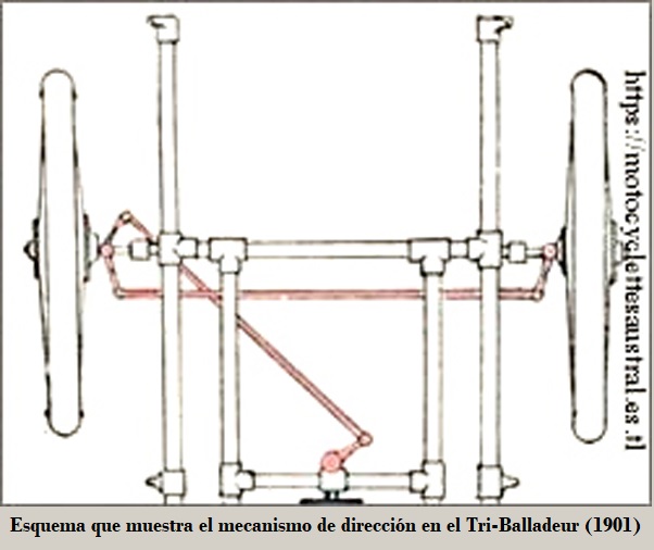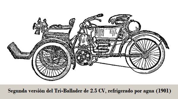 Presentó su primer vehículo en "L´Exposition Universelle" de Paris. Se trataba de un triciclo tipo tadpole equipado con motor DE DION-BOUTON montado sobre el eje delantero, con transmisión por eje precisando de diferencial.