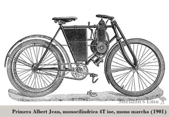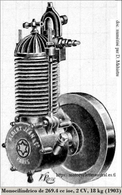 Luego fabricaron una motocicleta ligera con motor monocilíndrico también ioe de 2.25 CV, con aletas y culata desmontable, refrigerado por aire; en el cárter estaba grabado "Albert Jean & Cie, París", con una estrella de seis puntas en el centro.