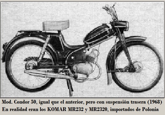 Los dos únicos modelos importados fueron las versiones del KOMAR MR232 (en 1966) y el MR2320(1968) ambos con motor JAWA de 49 cc 2T que se vendieron bajo el nombre Condor 25 y Condor 50, respectivamente.