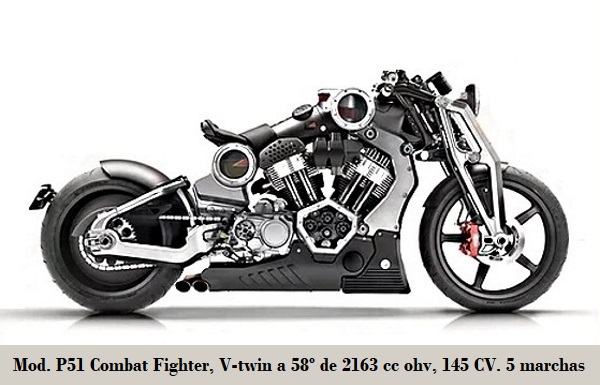 • Combat Fighter P51G2: V-twin a 58º de 2163 cc, 145 CV / 5 100 rpm, escape / silencioso con salida inferior, llanta de disco trasera; resto igual. 2015. Producción únicamente 50 unidades.