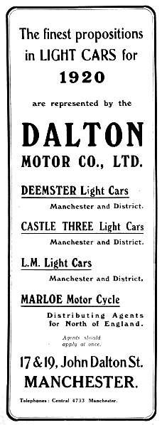 La "Dalton Motor Co." con sede en John Dalton Street, Manchester, Lancashire, se dedicó a ensamblar motocicletas desde 1920 hasta 1922.