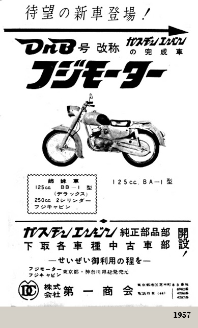 La Fuji Automobile fabricó las motocicletas DNB (DNB号) equipadas con sus motores Gasuden en una gama de cilindradas de 123, 197 y 250 cc, todas ellas de 2T