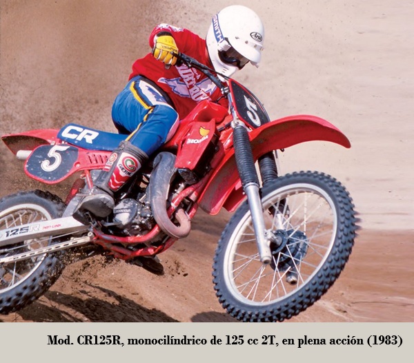 (1973) con 29 CV y 104 kg de peso, pero fue el CR125 la que tuvo el mayor impacto en los pilotos de Estados Unidos. Fue la motocicleta que cambió todo, con gran cantidad de éxitos.