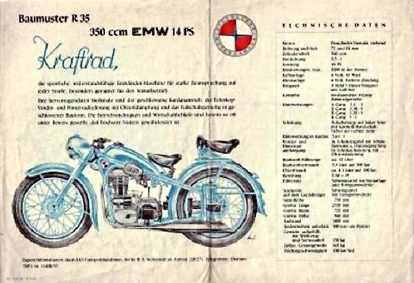 Fabricaron un sólo modelo de motocicleta - la R35 - con motor monocilíndrico de 342 cc ohv, con transmisión por eje, muy parecidas a las antiguas BMW de 1937, que fabricaron durante una década, con cambios menores como palanca de cambio de marchas accionada por el pie (R35/3).