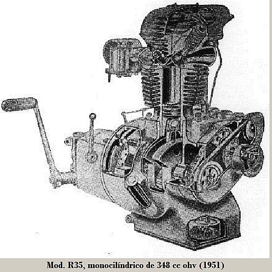 • R35: monocilíndrico de 342 cc 4T ohv, 14 CV / 5.200 rpm, 4 marchas, compresión 5.5:1, batería 6 V / 45 W, llantas D/T 3.50 x 19", suspensión D/T horquilla telescópica / amortiguadores de émbolo, tanque de 12 L, consumo 3.5 L/100 km, velocidad máxima 100 km /h y 170 kg de peso.