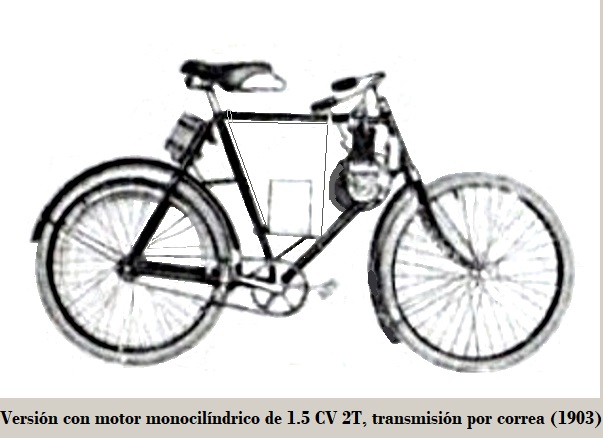 Al años siguiente la potencia del motor aumentó a 3.0 CV y montado verticalmente delante del eje de los pedales, con transmisión idéntica a la anterior, siendo su bastidor basado todavía en una bicicleta sin refuerzo alguno en la horquilla.