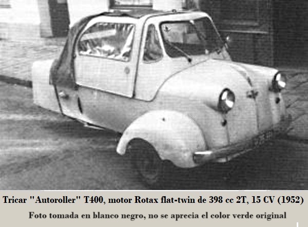 Iniciaron la fabricaron de los primeros tricars tipo tadpole, denominados Autoroller T 400, de 3 plazas ¹< (1 + 2), equipados con motor ROTAX bicilíndrico tipo bóxer de 398 cc 2T de 15 CV, 5 marchas (4 + reversa), montado en la parte trasera con transmisión a su única rueda, sistema eléctrico de 6 V, arranque eléctrico, velocidad máxima 128 km/h, consumo 4.5 L/100 km y un peso de 340 kg; lo más característico fue que los guardabarros era solidarios con el giro de la ruedas delanteras