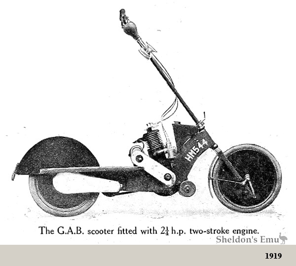 Finalizada la I Guerra Mundial hubo un auge en la producción de escúteres. En 1919, el GAB fue un intento pero de corta duración para sacar provecho de la moda.