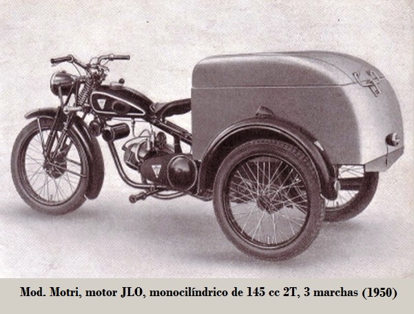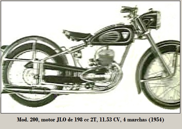 - Mod. 200: de 198 cc, 11.53 CV/5 200 rpm, 4 marchas, velocidad 95 km/h, tanque 12 L (consumo 2.4 L/km). 1954