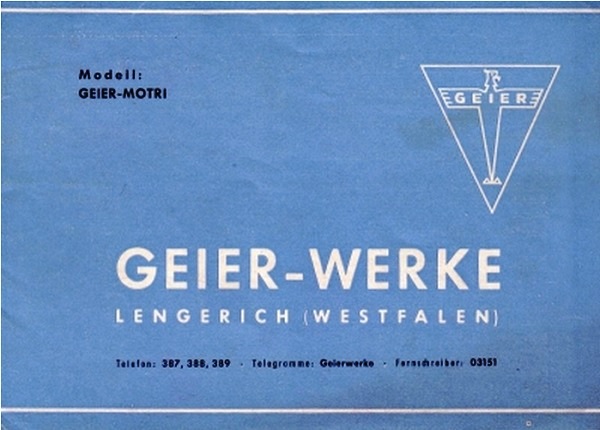 Ernst Upmeier, fundador y propietario de la "Geier-Werke GmbH, con sede en Lengerich, Westfalia, como fabricante desde 1910 de bicicletas y accesorios para las mismas, se dedicó a partir de 1934 a la producción de vehículos motorizados: motocicletas, motocarros y automóviles de turismo, a través de la "Geier Fahrradwerk Ernst Upmeier & Söhne", en la ciudad de Lengerich.