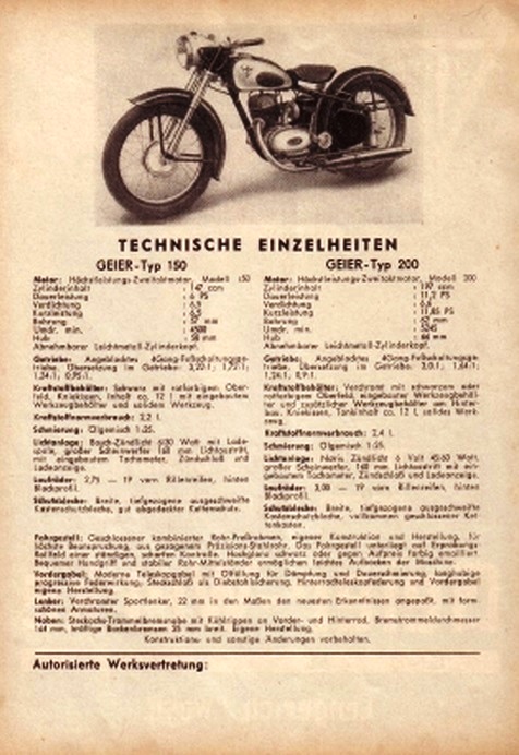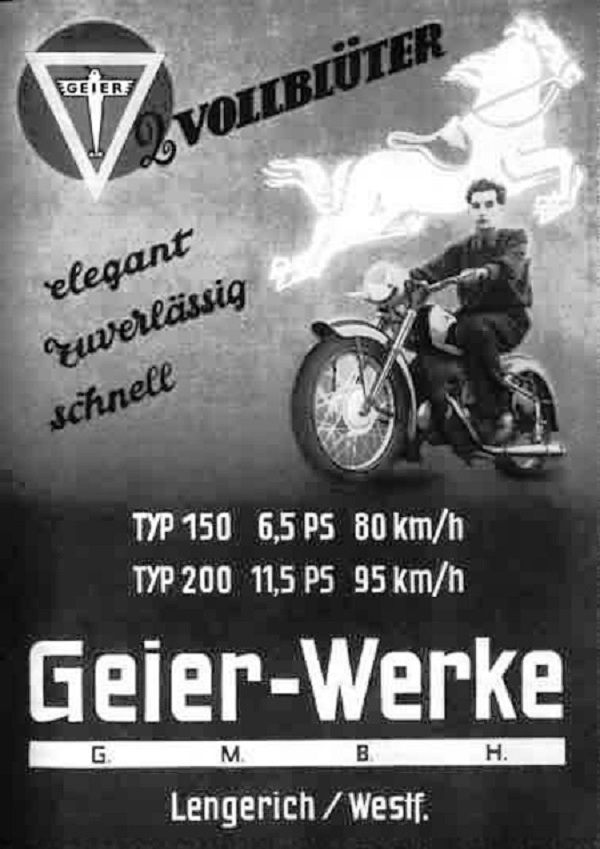 Al estallar la II Guerra Mundial, se dedicaron a la producción de granadas de mano y una vez finalizada, a través de la "Geier Fahrradwerk Ernst Upmeier & Söhne", comenzó de nuevo con la producción de ciclomotores y motocicletas ligeras y motocarros tipo delta, equipados con motores SACHS e JLO de 123 y 173 cc 2T.