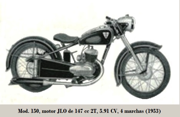 - Mod. 150: de 147 cc 5.91 CV/4 500 rpm, 4 marchas, velocidad 80 km/h, tanque 12 L (consumo 2.2 L/km). 1953