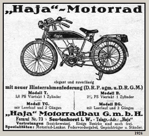 La firma "Haja Motorradbau GmbH", con sede en Sendenhorst, Westfalia, fundada en 1924 se dedicó a ensamblar motocicletas muy simples con motores monocilíndricos HANSA de 198 cc con distribución sv, montados en bastidores muy sencillos.