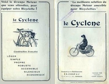 La "Cyclone Établissements J.H. Exshaw et Cie" ¹ con sede en el 1-31 Boulevard J.J. Bosc, de Burdeos, departamento de Gironda, se dedicó a la fabricación de motores.