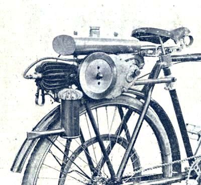 Se podía montar en cualquier bicicleta, sobre el guardabarros trasero, con transmisión final a la rueda mediante correa.