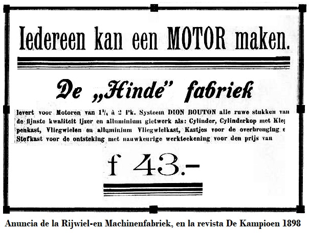 La firma "Hinde Rijwilen Fabriek", con sede en Amsterdam, provincia de Holanda Septentrional, fundada por G.L. Gink en 1888, se dedicaba a la fabricación de bicicletas.