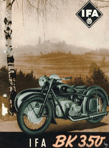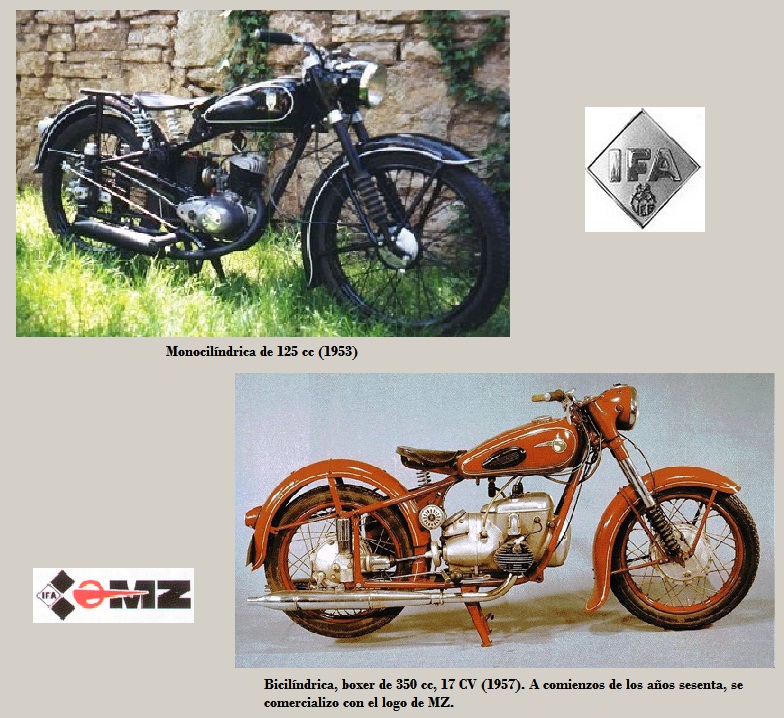 El primer modelo de serie, completamente nuevo, fabricado por IFA fue una Flat-twin bicilíndrica plana de 350 cc 2T, con transmisión final por eje; a comienzos de los años 60 se comercializó con el logo de MZ.