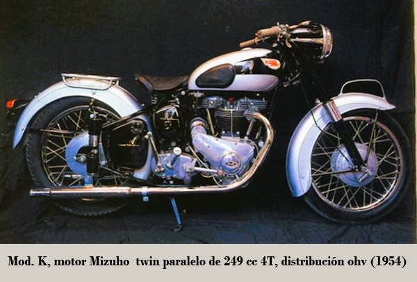 El modelo K fuel el más potente e importante de la firma. Se trataba de una máquina equipada con motor MIZUHO, twin paralelo de 249 cc 4T con distribución ohv, caja de cambios pre-unit de 4 velocidades, kick starter, bastidor simple cuna, suspensión D/T horquilla telescópica / amortiguadores de émbolos, frenos de tambor D/T...