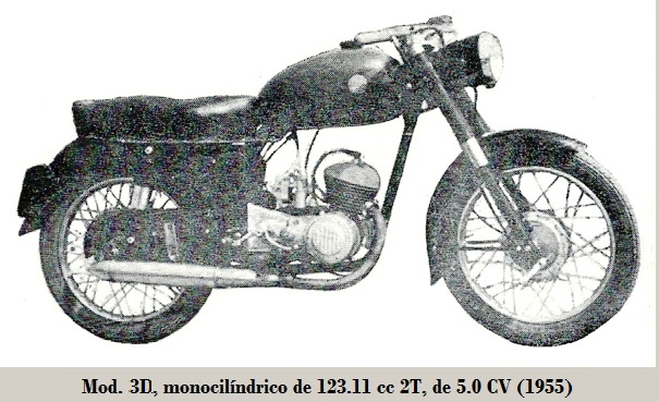 • 3A: de 5.0 CV / 4 800 rpm, 4 lumbreras, monoplaza, carburador Dell´Orto de ø 17 mm, caja de cambios de 3 velocidades, suspensiones D/T telescópica hidráulica / amortiguadores hidráulicos, velocidad máxima de 70-75 Km/h. 1953-1955