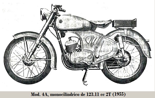 • 4A: de 6.0 CV / 6 000 rpm, biplaza (2 asientos independientes), 4 velocidades, cubrecadena integral 1955